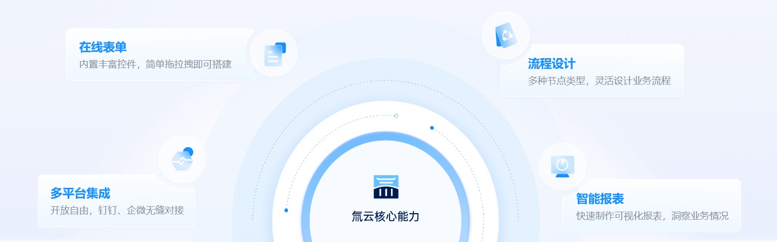 应用简介 应用表单是企业业务数据的入口,表单设计是无代码系统构建的第一环,也是极为重要的一环。通过不同的字段组合与配置,系统搭建者能够以规范化的格式,收集到想要的业务数据,作为后续流程处理、数据分析的基础。 通过表单完成数据入口设计后,系统搭建者就可以为数据后续的流转设计相应流程了。通过流程节点的快速设置,可让申请人填写申请后,数据按照设定流程自动流转,发送待办给指定节点负责人进行审批、填写、抄送… -